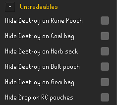 * Hide "Destroy" options for Rune pouch and Coal bag