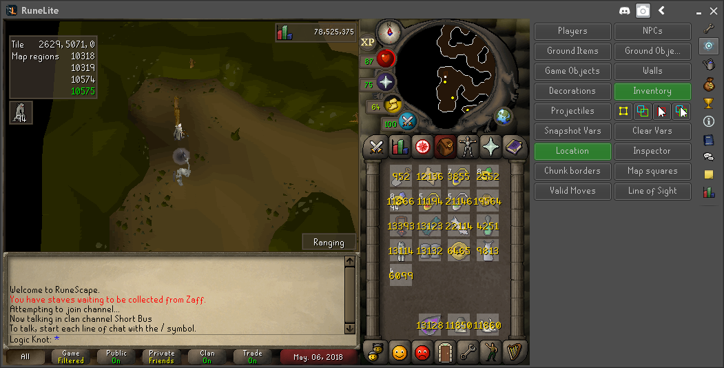The hot-cold clue scroll plugin is an extension of the existing clue scroll plugins. When a hot-cold clue is opened, instructions for obtaining the strange device will be displayed. Once the user attempts to use the strange device, the panel component will switch to showing names of world areas and how many possible final locations are in each world area. Once the user checks in a different spot, the list of world areas and number of possible final locations will be updated to reflect the temperature obtained from the strange device. From the second check onward the warmer/colder result of the strange device will also be considered (same temperature is not considered at this time because I couldn't figure out a good way to implement it, but the process is still quick without it).